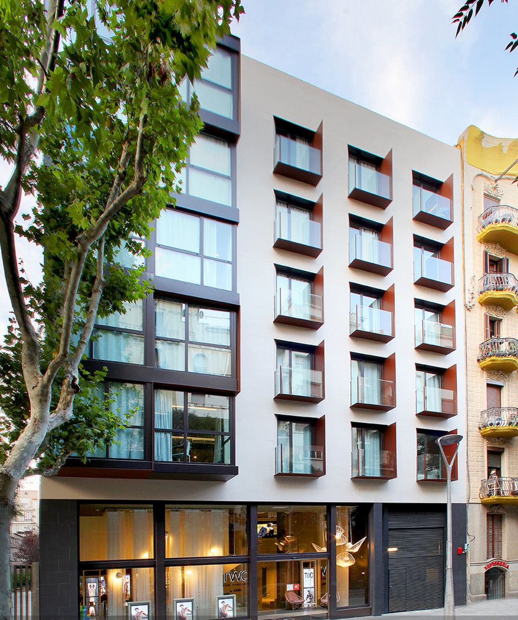 El edificio cuenta con una superficie total de 4.786m² distribuidos en 6 plantas en altura y 3 plantas subterráneas. Se trata de un hotel de 4 estrellas superior con 87 habitaciones y 29 plazas de parking.