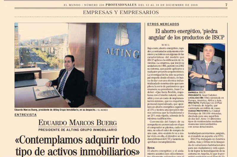 Interview with the Chairman of the Alting Real Estate Group at El Mundo. Interview published in El Mundo on 12/12/2012. […]